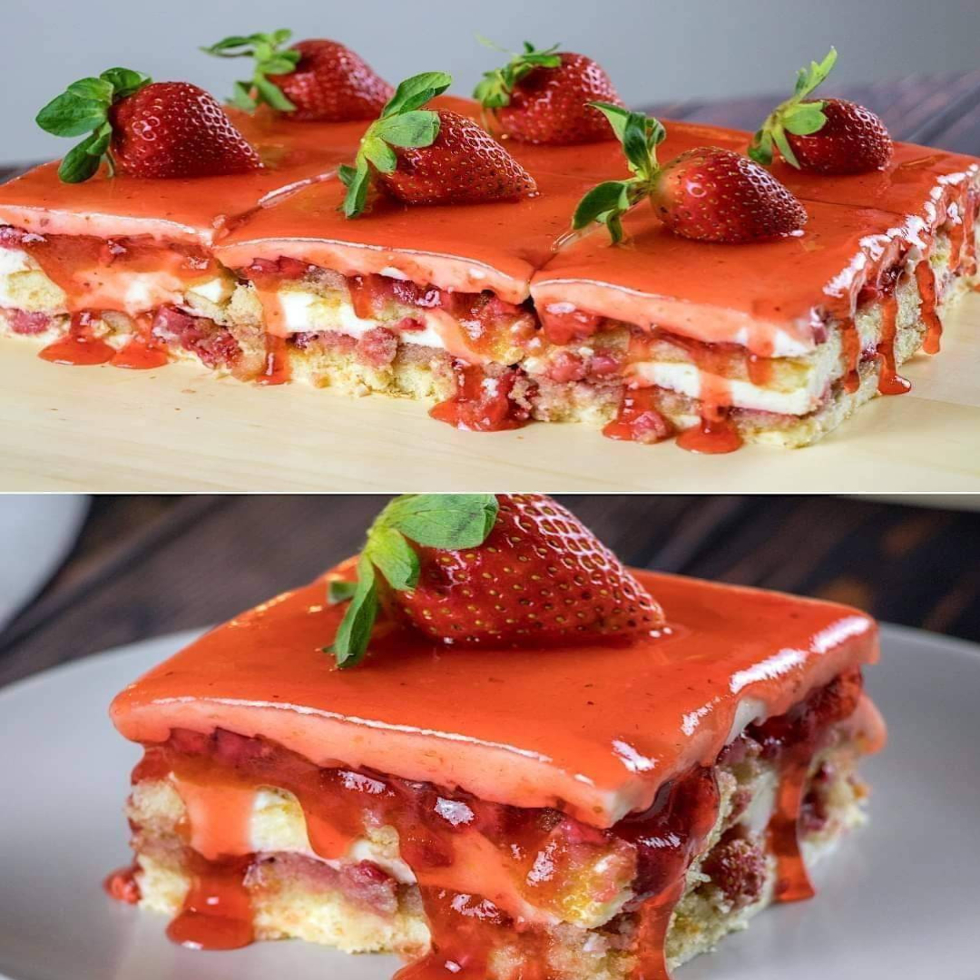 Ciasto truskawkowe jest bardzo proste w przygotowaniu i doskonale nadaje się na urodziny i specjalne okazje. Lekka i kremowa konsystencja, powstała z naprzemiennie ułożonych warstw musu, biszkoptu i świeżych truskawek.