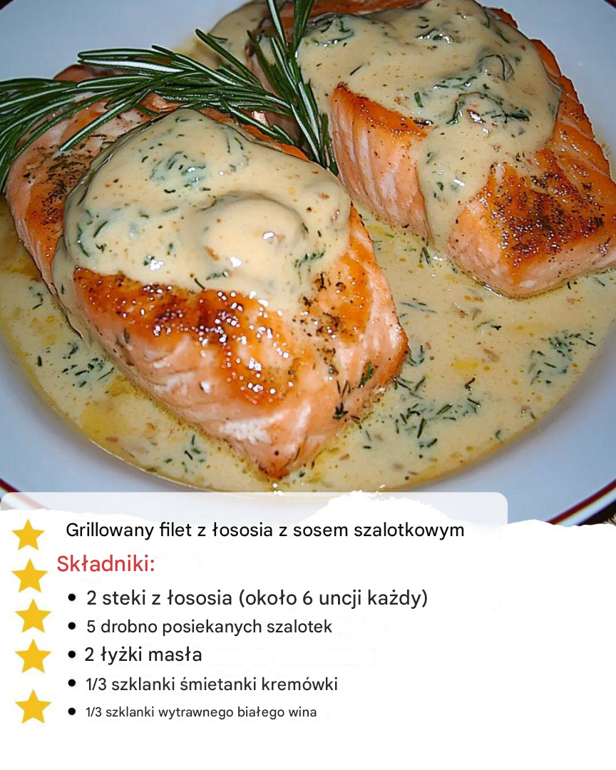 Grillowany stek z łososia z kremowym sosem szalotkowym i białym winem to eleganckie i wyrafinowane danie, idealne na pyszną i prostą kolację. Połączenie delikatnego łososia i kremowego sosu wzmacnia smaki i zachwyci Twoje kubki smakowe.