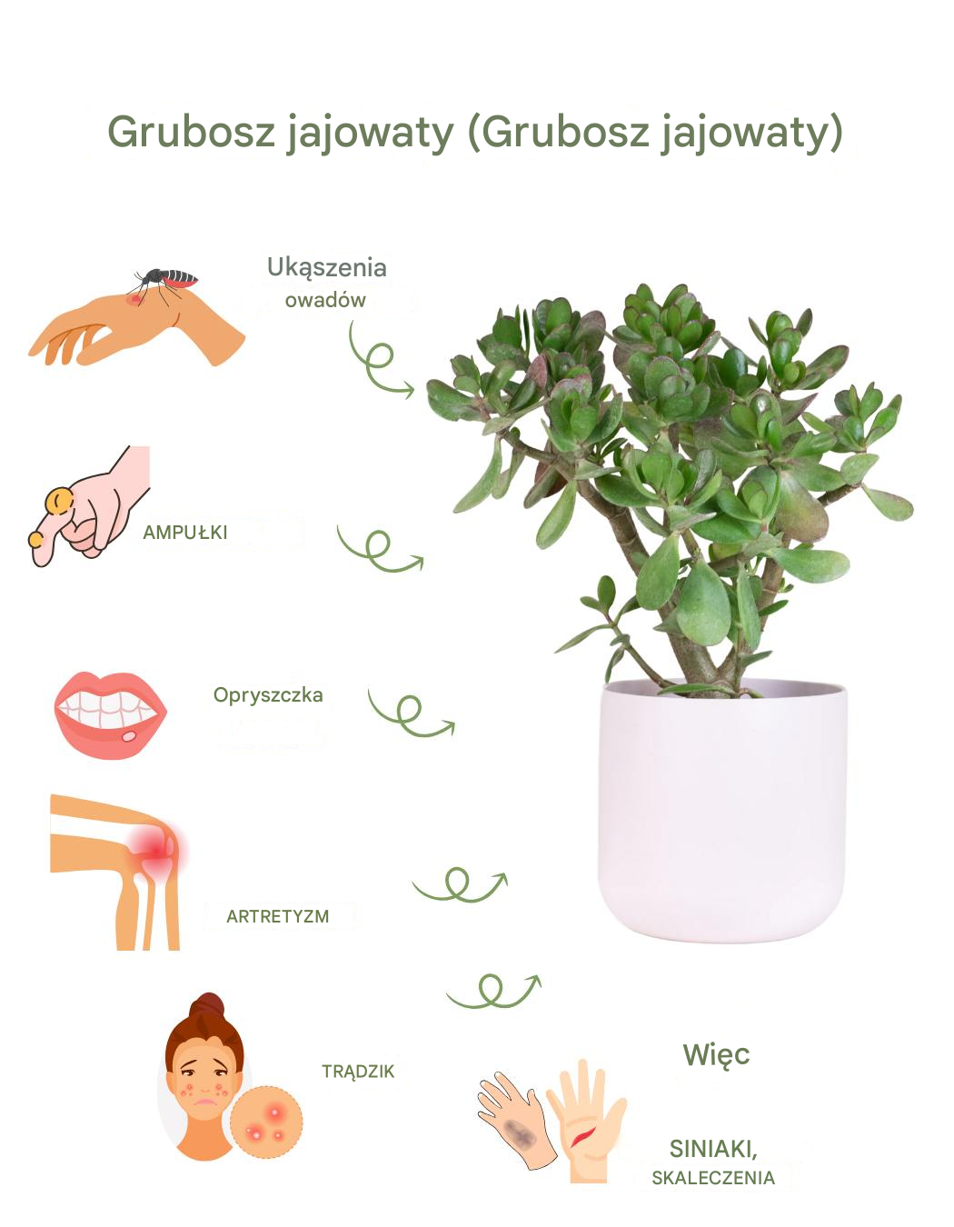 • Zdrowie: Absorbuje negatywną energię od osoby chorej. Roślina więdnie i odżywa, gdy człowiek poczuje się lepiej.