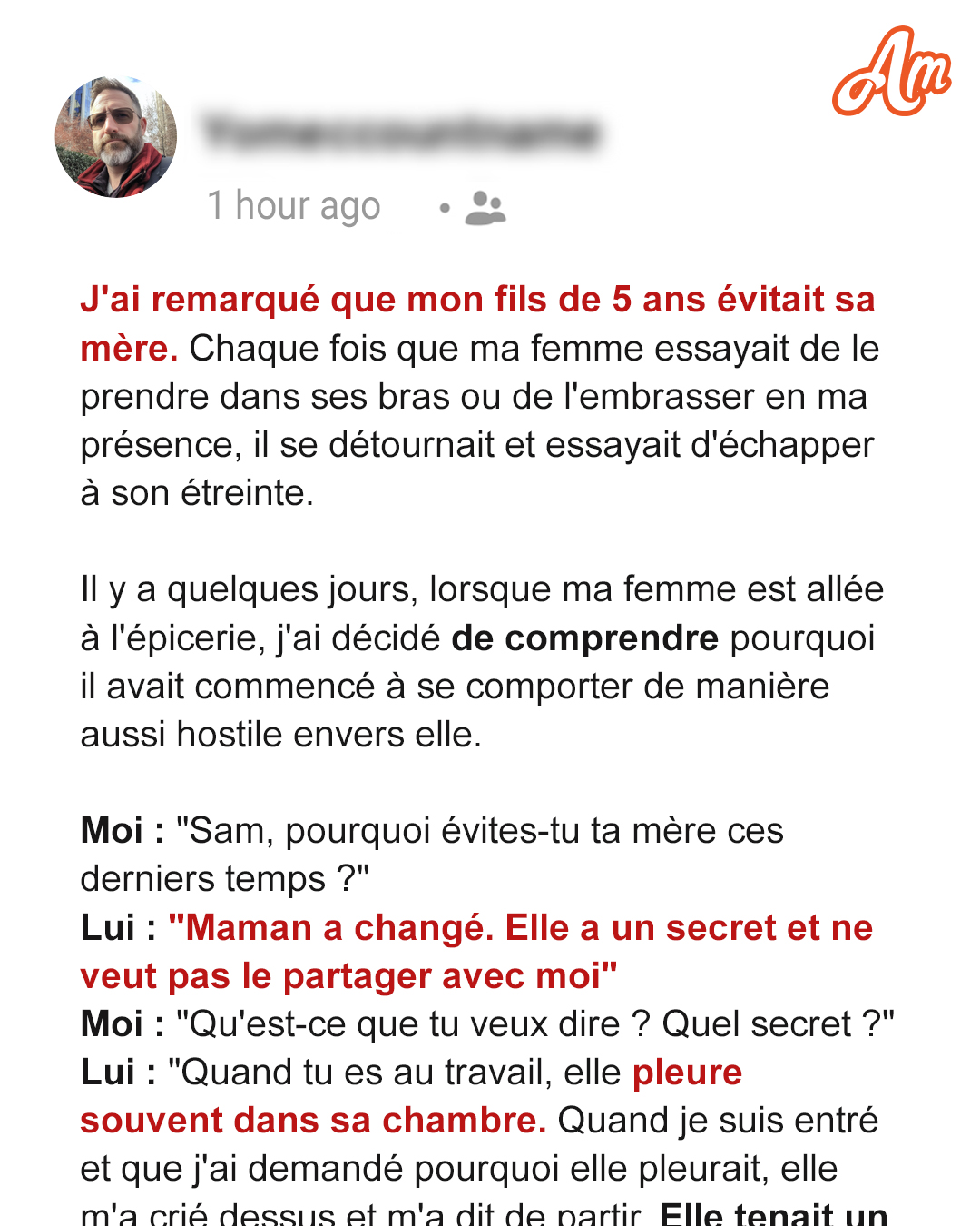 Odpowiedź Sama była nieoczekiwana i niepokojąca. „Mama się zmieniła. Ma sekret i nie chce mi go wyznać” – powiedział, a jego drobna twarz pociemniała z dezorientacji i bólu.