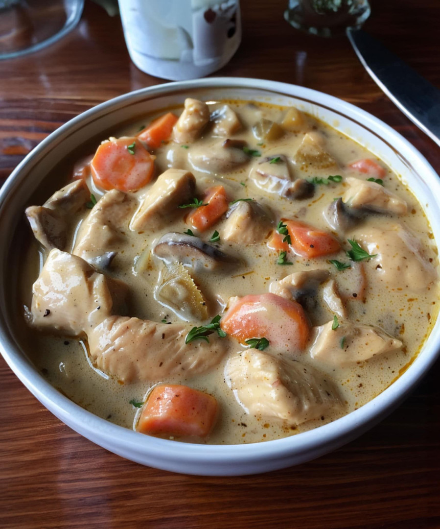 Chicken blanquette, kultowe danie kuchni francuskiej, słynie z aksamitnego sosu i łagodnych, rozgrzewających smaków. Tradycyjnie przygotowywana z cielęciny i odrobiny wina, ta wersja klasycznej potrawy jest nową odsłoną – zawiera kurczaka i pominął wino, dzięki czemu danie jest przystępne nawet dla tych, którzy wolą unikać alkoholu. Dzięki takiemu podejściu do tradycji możemy zachować wszystkie charakterystyczne smaki blanquette, a jednocześnie uczynić je lżejszym i odpowiednim dla szerszej publiczności, w tym dzieci.