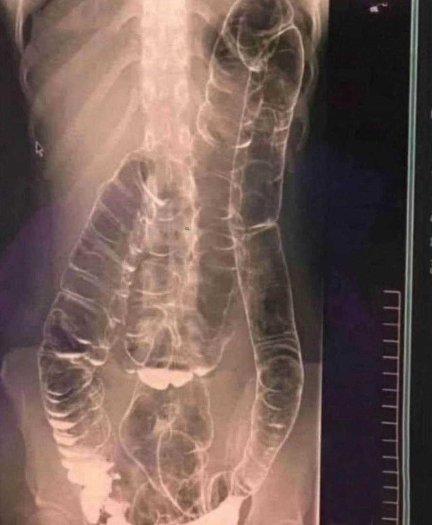 To właśnie przydarzyło się młodej kobiecie, której przypadek ujawniło imponujące zdjęcie rentgenowskie, wywołując dreszcze. Po ponad dwóch tygodniach bez wypróżnień zgłosiła się na konsultację. Rezultat: okrężnica tak rozszerzona, że sięgała aż do klatki piersiowej. Wszystko to jest spowodowane nagromadzeniem się starych, twardych stolców.