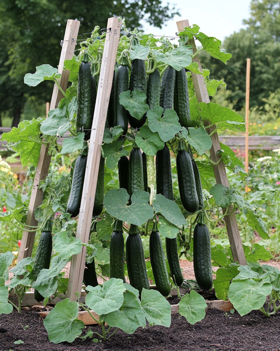 Ogórki są ciężkie, gdy zaczynają owocować, a cienka kratka może się zawalić pod ciężarem.