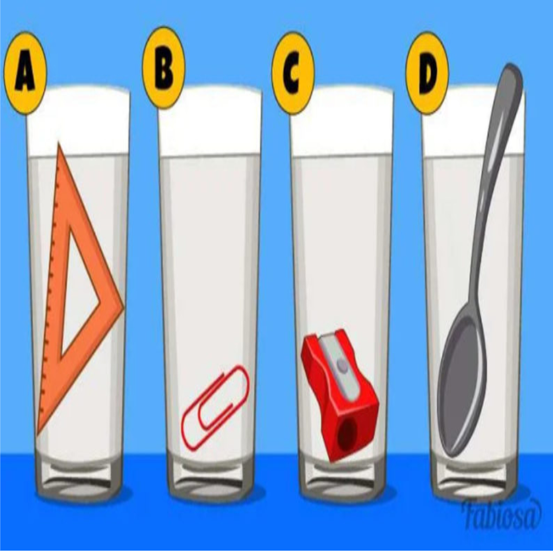 Zobacz obraz czterech szklanek wypełnionych przedmiotami powyżej. Przyjrzyj się uważnie temu, co jest w środku szklanki.